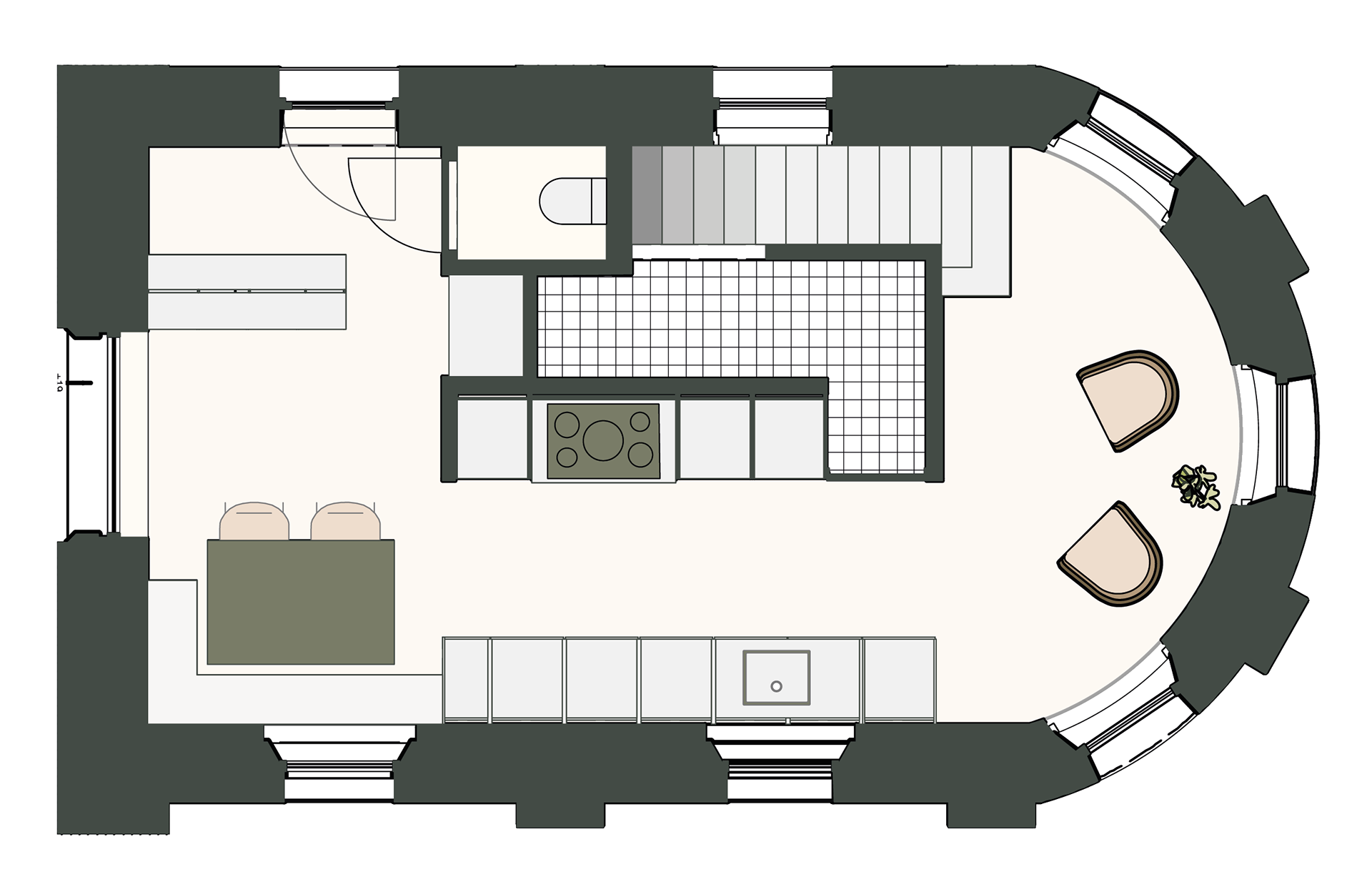 _ De Meet benadert de woning als de finish na beweging en inspanning: een plek waar het koppel tot rust komt. De kapel wordt getransformeerd tot een heldere, open leefruimte die ademruimte en herstel biedt. Natuurlijke materialen, licht en eenvoud versterken het gevoel van thuiskomen na de meet.
